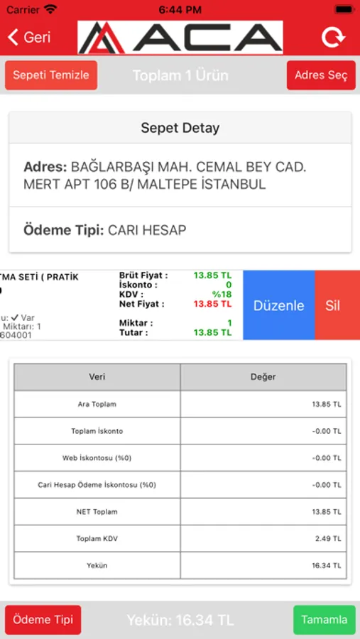 Aca B2B Sisteminin Web Adresi: https:/www.acakirtasiye.com