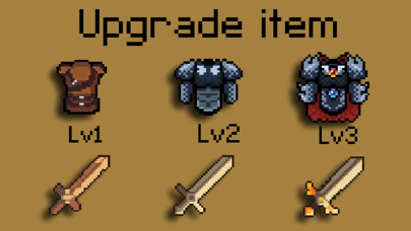 high quality pixel game with unique gameplay, you can clear dungeons and destroy bosses by crafting new weapons.