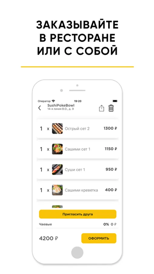 Заказывайте в приложении доставку наших блюд домой, на работу или по особому случаю. А еще, вы можете забрать заказ сами, указав время визита. Мы соберем все «с собой» точно к этому моменту.