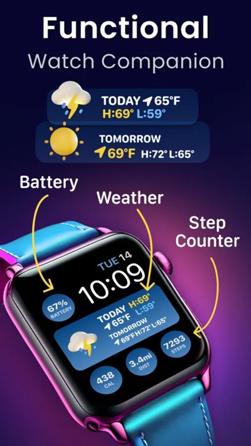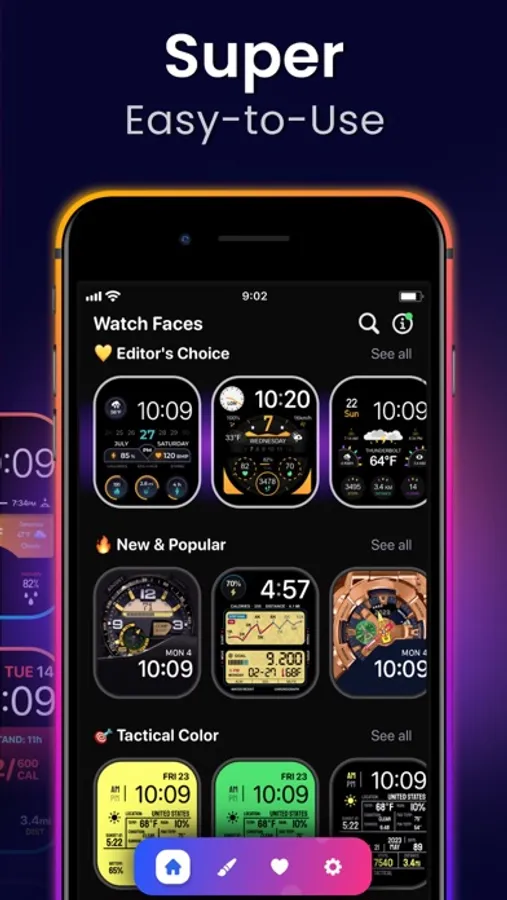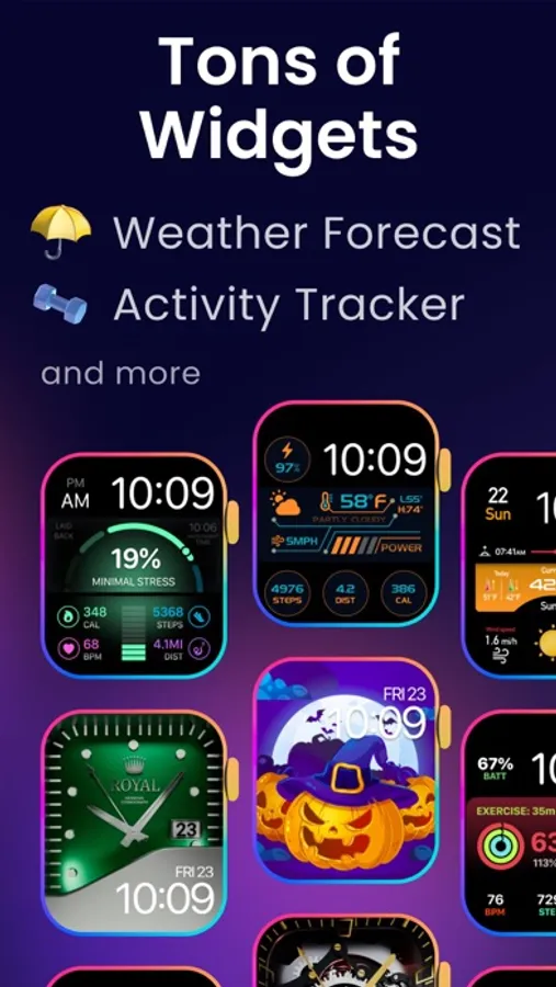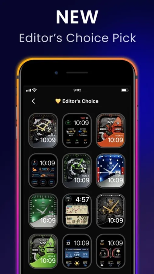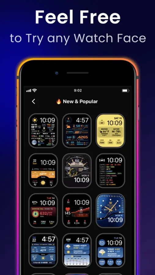 New Watch Faces are added weekly. Easily customize your Apple Watch Face with our selection of designs such as Digital, Spring, Valentine's Day, Fantasy, Tech, Neon, Cartoon, and more.