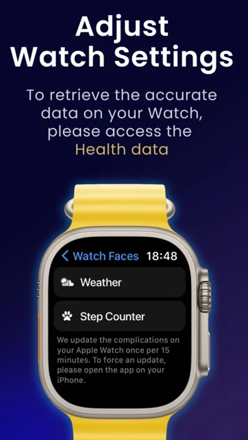 This app uses the Health integration to display Steps, Distance, Energy, and other data on the Apple Watch Faces in a convenient way for you.