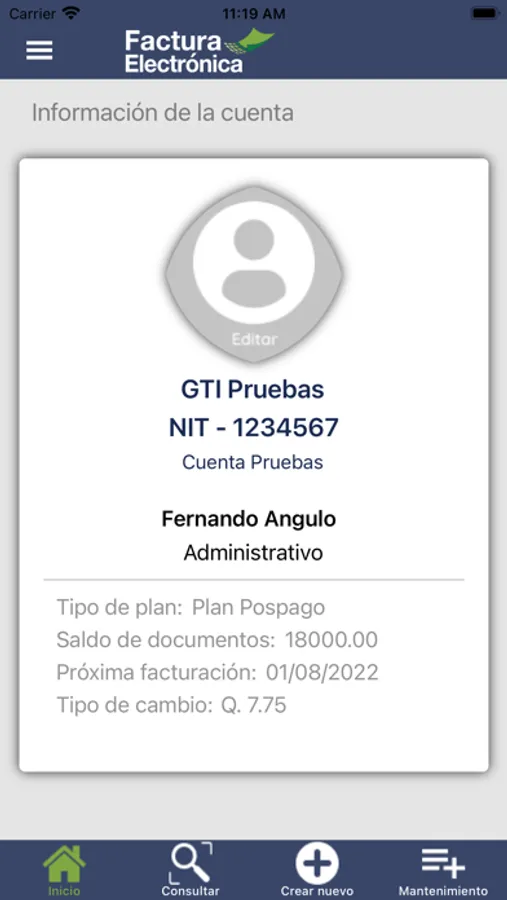 Para poder acceder a la aplicación debe disponer de una cuenta de Factura Electrónica GTI activa.