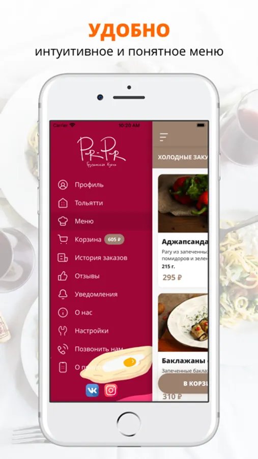 Приложение Pur-Pur — это удобный способ заказа еды домой или в офис! Мы готовим наши блюда из качественных свежих ингредиентов и доставляем еду в Тольятти