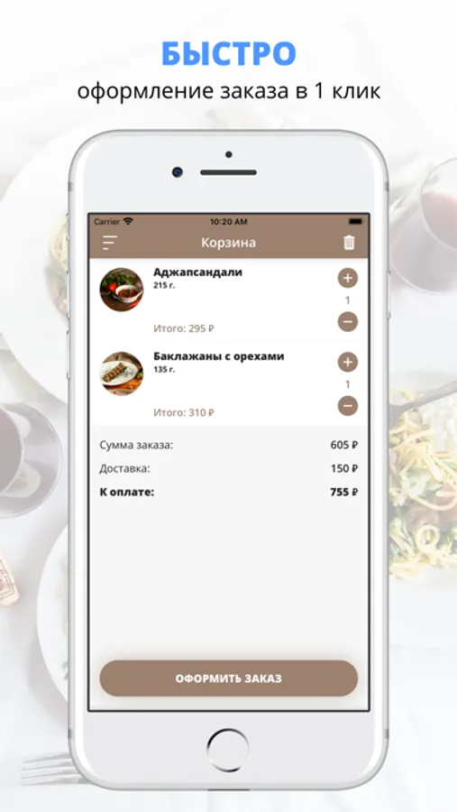 Скачивайте наше приложение, оформляйте заказ и наслаждайтесь любимой едой, где бы Вы ни были! Приятного аппетита!