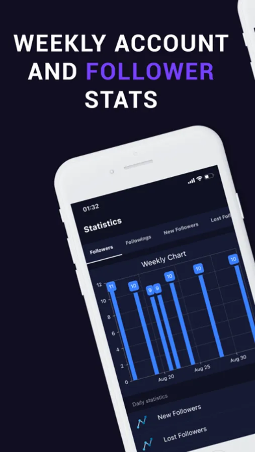 Follower Stats helps you analyze your account and find out the missing parts. Thanks to Follower Stats, you can see your fans gained and lost.