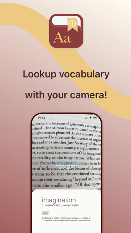 Use CamLookup to aim at a word you would like the definition for and simply press search to get its accurate definition!