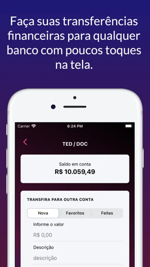 Faça suas transferências financeiras para qualquer banco com poucos toques na tela.