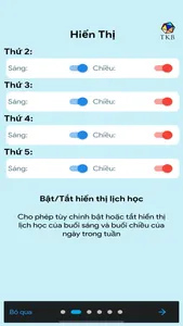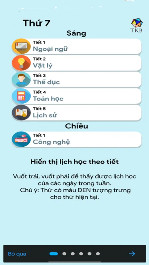 Hiển thị lich học của các ngày trong tuần dưới dạng tiết học hoặc theo thời gian.