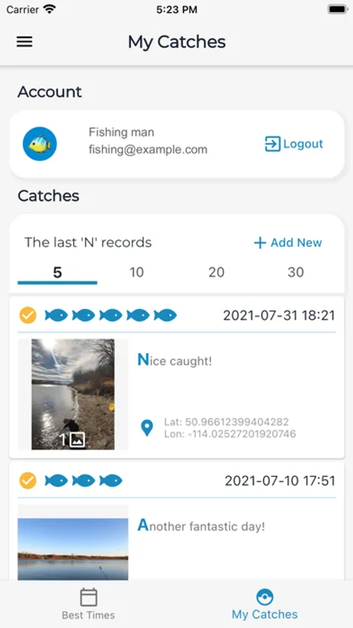 4. Upload you catches information to the server that includes pictures, locations, descriptions etc.