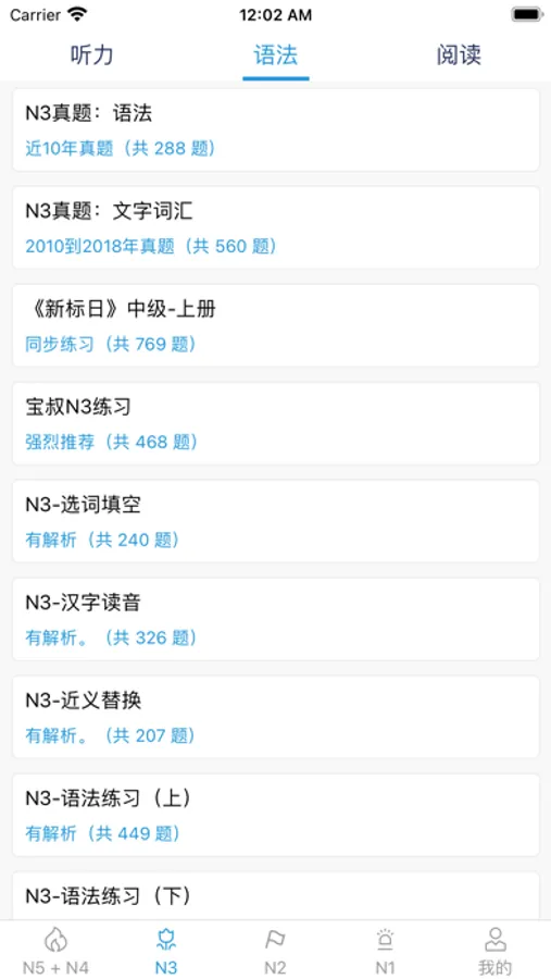 The introduction to Japanese test questions contains a large number of real questions over the years, supporting special training in words, grammar, reading and listening.