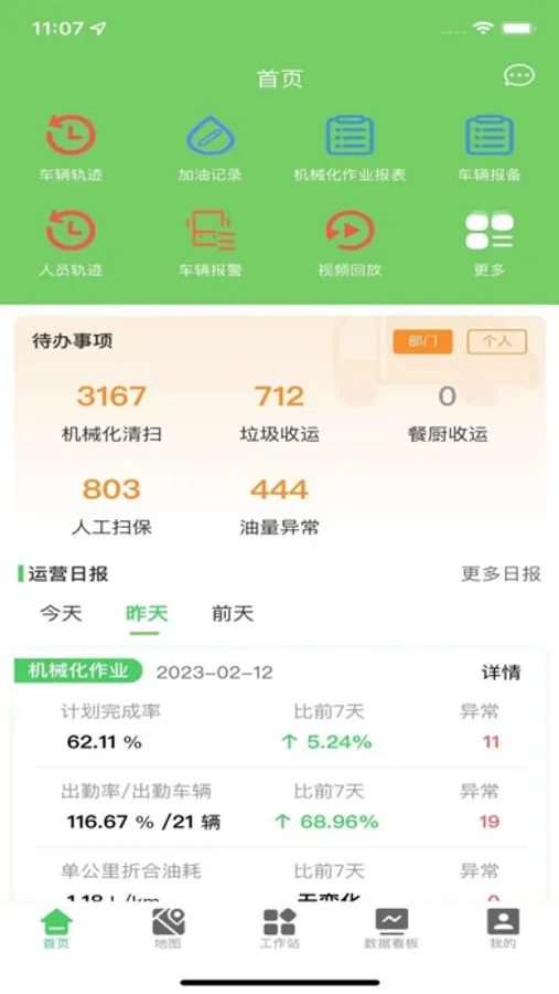 1、基于环卫作业计模块(CBU)和通讯终端上传的环卫作业信息、能耗信息和位置信息进行统计分析的大数据平台