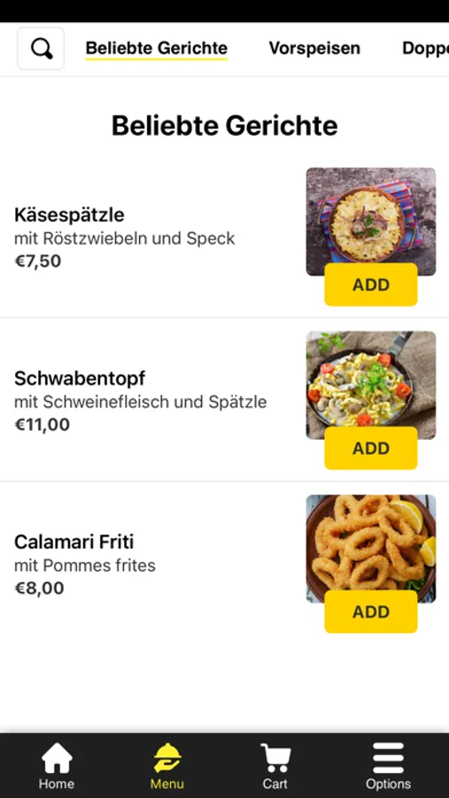 - Durchsuchen Sie die Speisekarte des Restaurants und sehen Sie sich alle anpassbaren Optionen im Voraus an