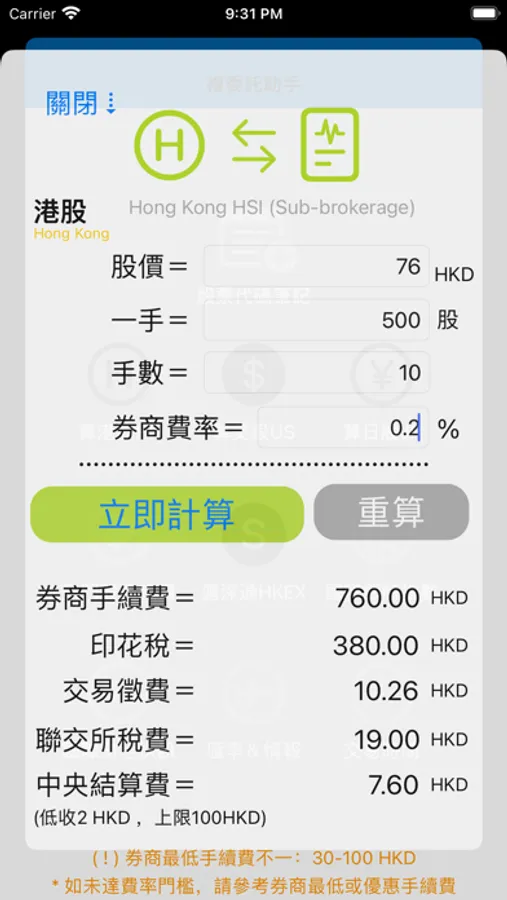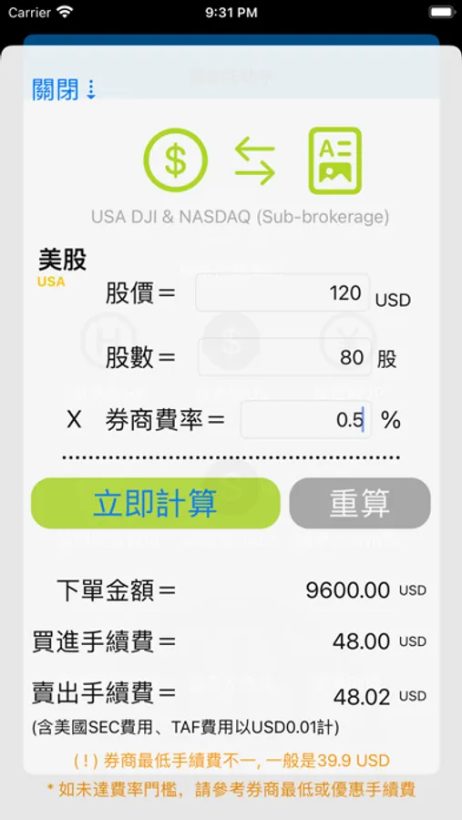 完整提供美、日、港、滬深通複委託手續費、稅費計算。