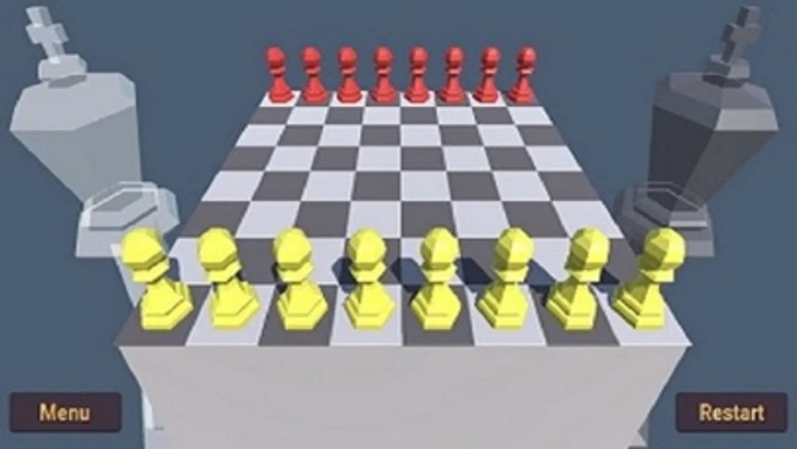 Игра состоит из нескольких раундов с участием двух игроков. В первом раунде желтые пешки размещаются в первом ряду, а красные - в последнем.