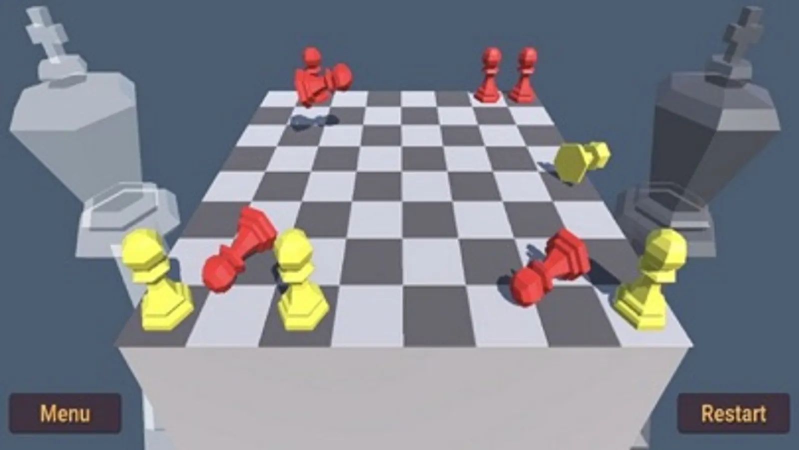 Игра продолжается до тех пор, пока на доске не останется только один цвет, выигравший раунд. Затем победитель начинает следующий раунд, в котором пешки этого игрока перемещаются на один ряд вперед. Когда один из игроков перемещается за половину доски, игра заканчивается.