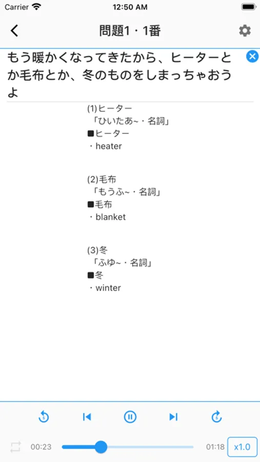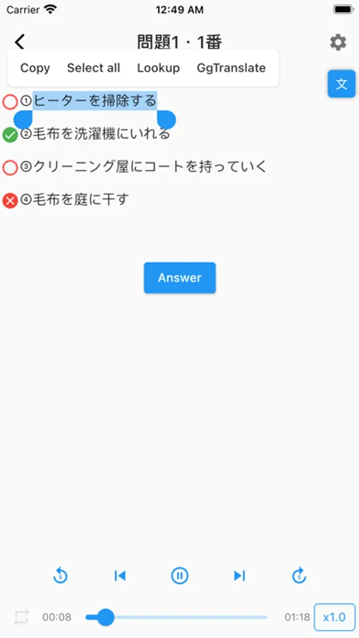 Help you practice JLPT N3 with the listening section of previous years. Includes answers and scripts.