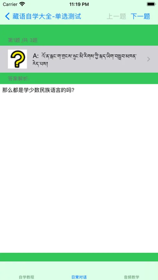 本应用全面涵盖了藏语自学教程、日常对话、音频教程,是学习藏语人士不可多得的app.