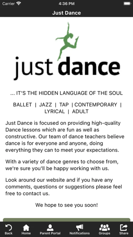 The Just Thrive app allows you to manage your account with ease, register for classes, shop online, pay term fees. You'll also receive important notification about class changes, registration openings, special announcements, and upcoming events.