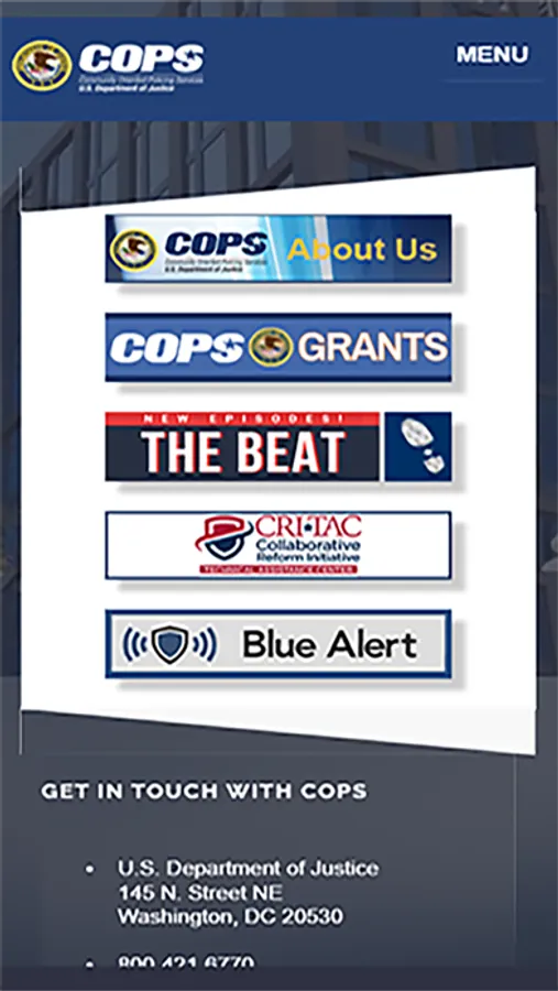 Application which will act as a hub for new information regarding Grants, Alerts, and new programs with the COPS office.