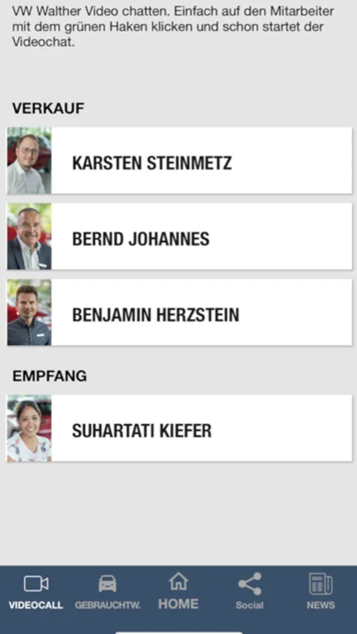 Immer In Kontakt, wann immer Sie wollen - ganz bequem per Videochat mit unseren Verkäufern oder unserer Anmeldung in Verbindung setzen - einfach angemeldeten Mitarbeiter auswählen und Videochat starten