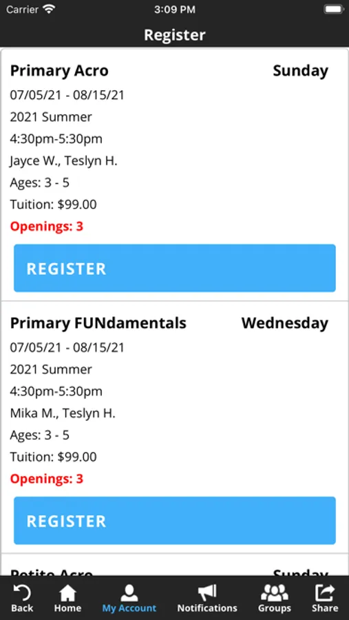 The TAFYDanceAK app allows you to manage your account with ease, register for classes, parties and special events. You'll also receive important notification about class changes, closings, registration openings, special announcements, and upcoming events.