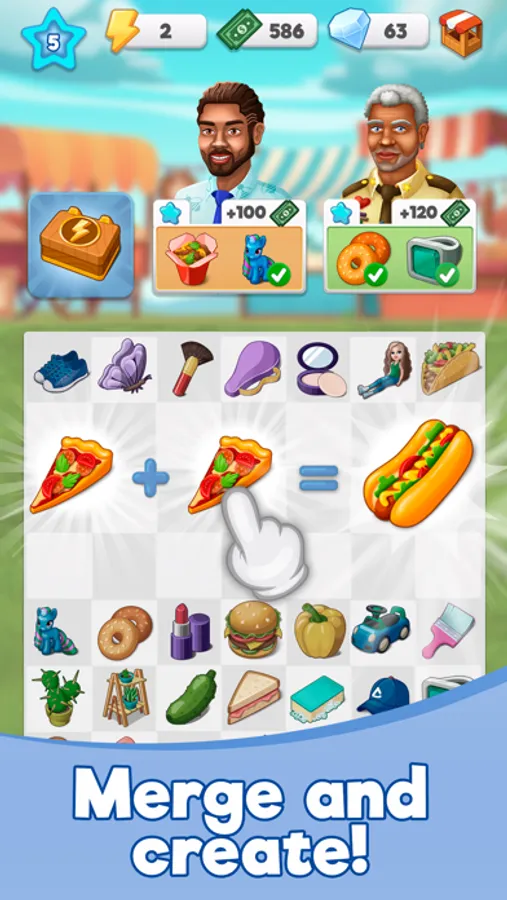 - Merge items to discover hundreds of unique tools and items to rebuild the town.