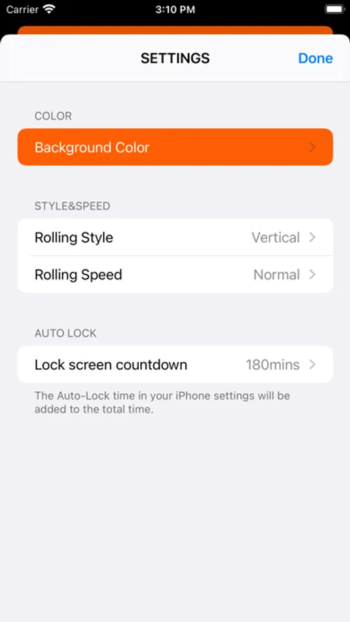 Support large font horizontal and vertical scrolling, rich colors to choose from, scroll speed and lock screen countdown can be set.