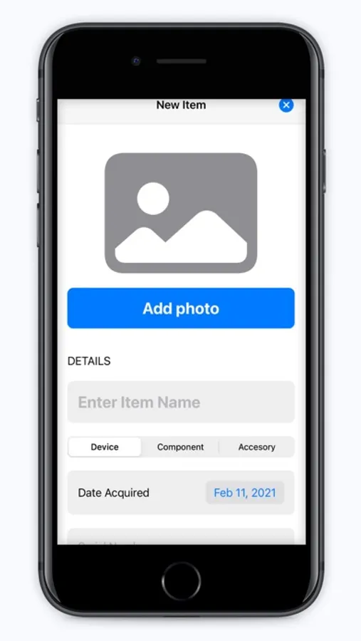 - Functionality for adding pictures about tech items from either the camera or photo library
