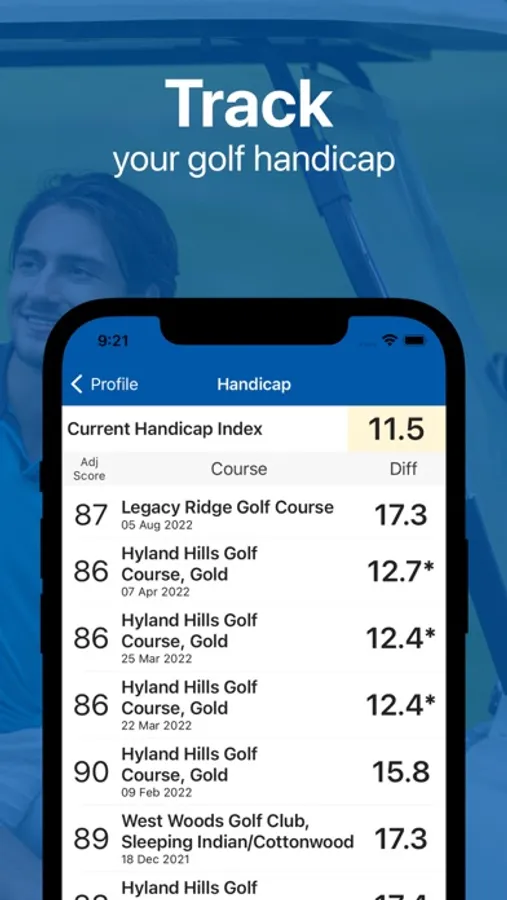 - Automatically calculate your approximate World Golf handicap (not an official handicap).