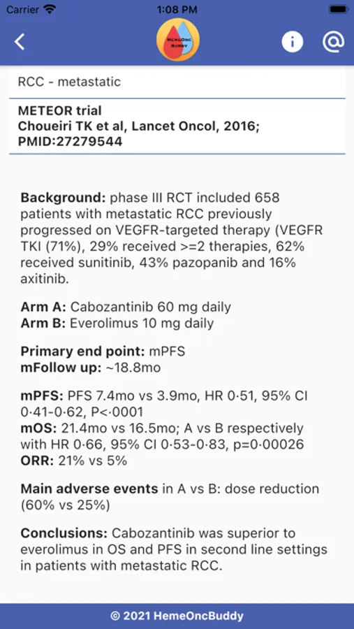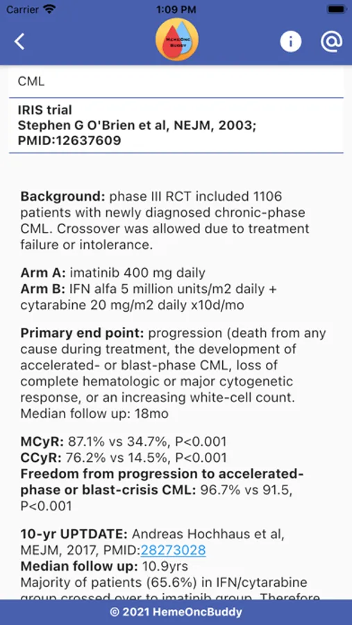 Research in Hematology and Oncology has seen a remarkable growth with a significant amount of treatment advancements in recent years. Keeping up with recent literature has become more challenging. In the HemeOncBuddy app you can find the most important and practice-changing clinical trials in Hematology and Oncology.