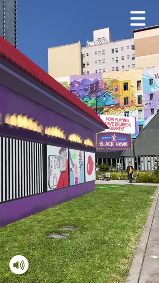 Enjoy art, history and jazz in a new way with Live at the Black Hawk augmented reality experience. The app provides a location-based, family friendly, AR experience in San Francisco. It consists of an AR re-creation of the world famous Black Hawk Jazz Club that was located in San Francisco from 1949-1963. The billboards on the outside of the AR building provide interactive, audio-visual narrations about local history using stories and artworks created by local youths. The experience also serves as an art and music gallery showcasing the works of local artists.