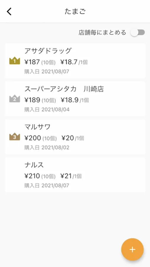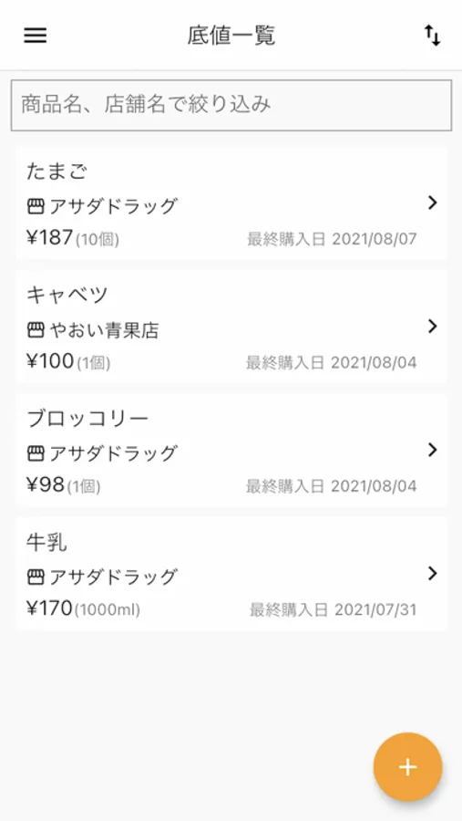 日々のお買い物の際に、このアプリに価格を登録することで、店舗毎の商品の底値を簡単にみることができます。