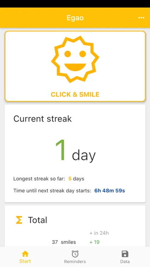 Egao supports you in reaping these benefits of smiling. It reminds you to smile and tracks your extra smiles.