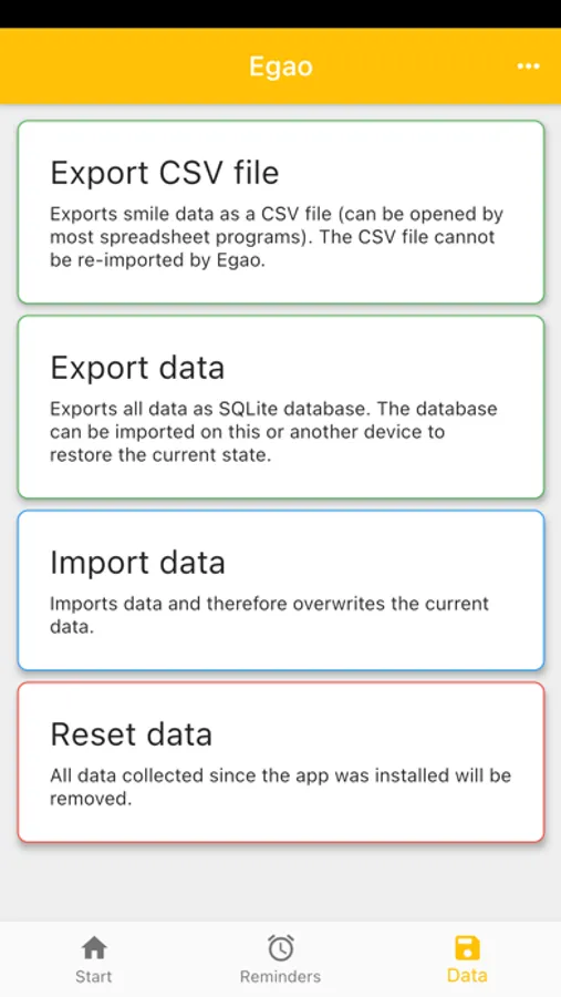 We consider smiling as a minimal intervention for your well-being and mental health. Consequently, we consider all collected data as personal and help you to keep it private. All smile data is stored only locally, and there is no data transfer to any server (we don't even have one).