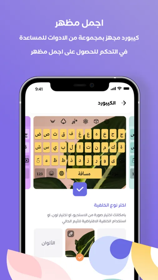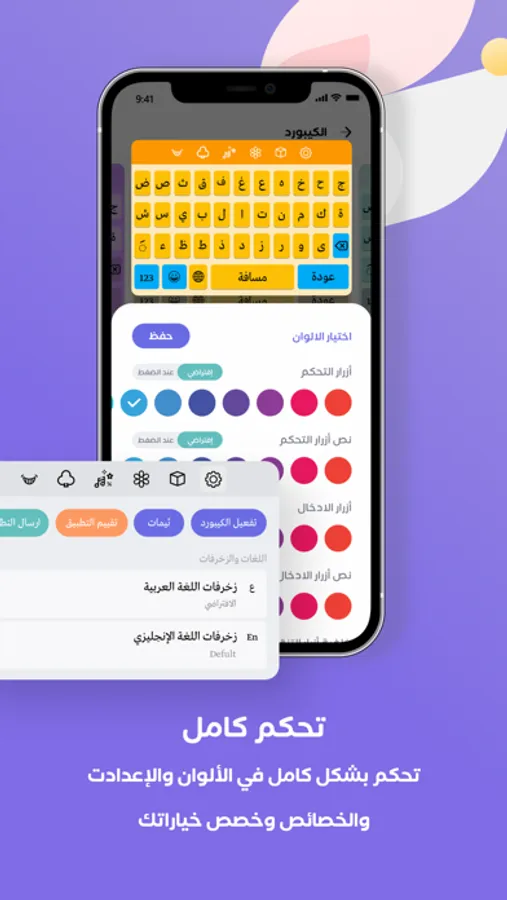 مميزات لوحة المفاتيح والزخرفة المتوفرة داخل التطبيق :