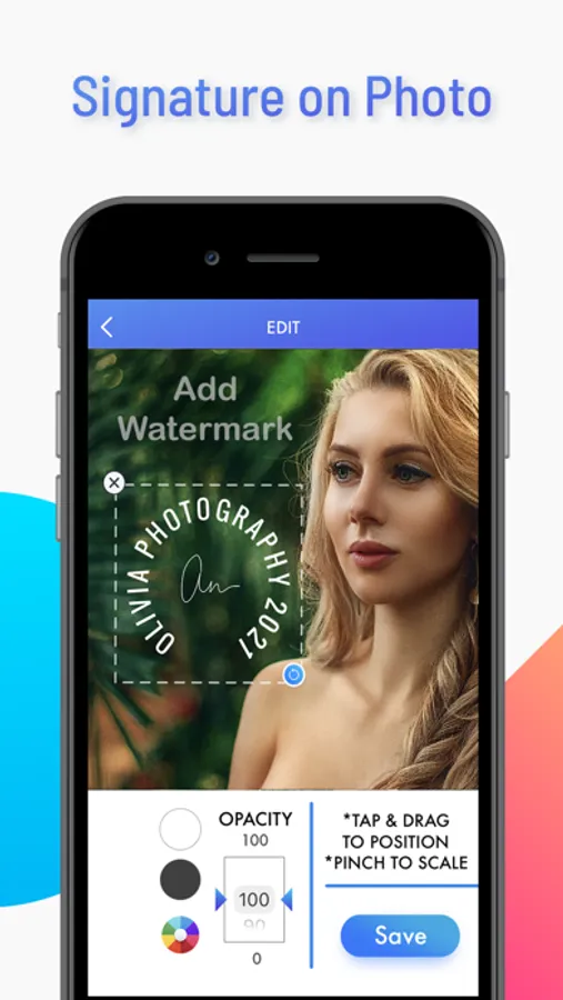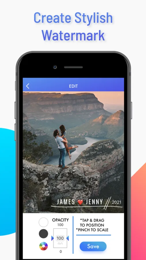 Watermark Copyright on Photo is the easiest app to add watermark, text, signature and stickers to your photos to build your brand and protecting your photos online.