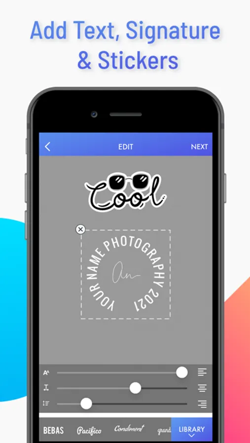Add your signature, custom unique logos and lots of other design elements to your photos with just a few simple clicks.