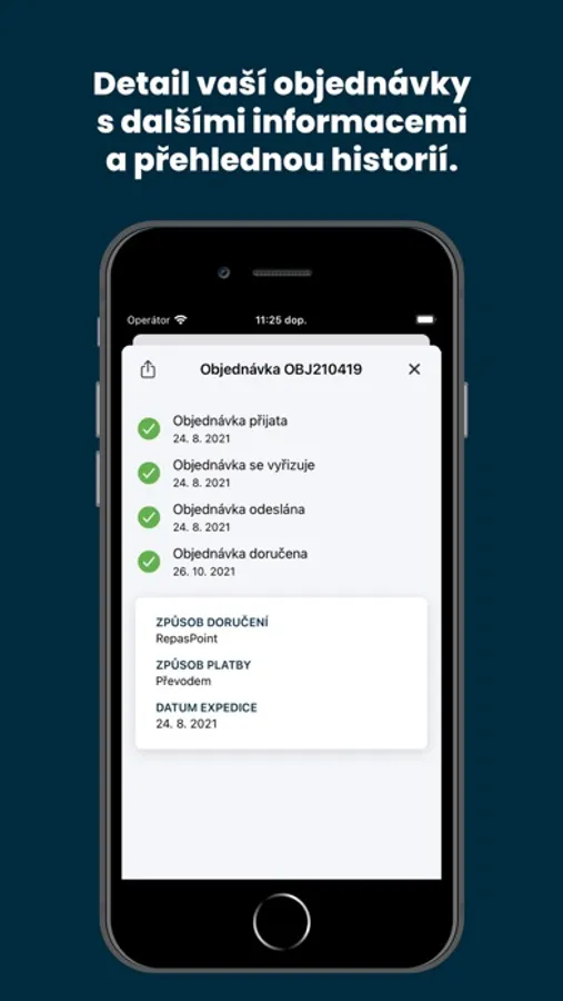 V rámci Vaší objednávky uvidíte celý její proces včetně informací jako datum expedice, způsob doručení, cenu a fotky Vámi objednaného zboží. Přesně víte, co můžete očekávat a na co se těšit.