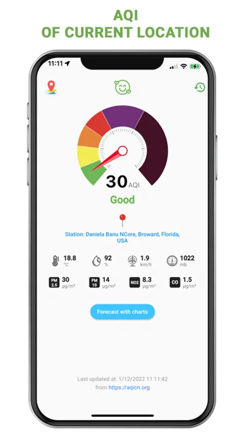 Explore the air quality anywhere on the world. You can freely pick the location you want on the google map.