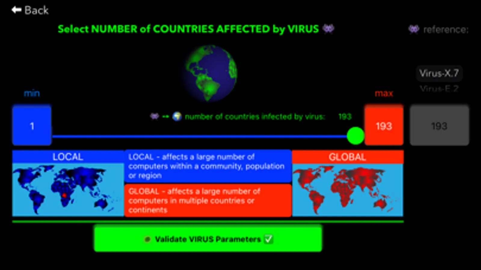 - you will be able to define how many countries around the world will be affected by this VirusX.