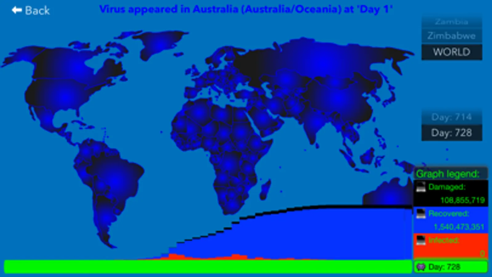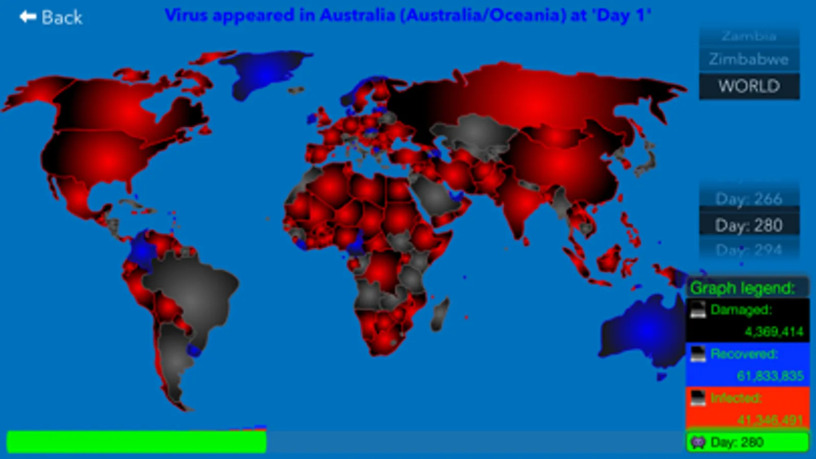 - in the selected country - first infected computer will appear on "day 1"