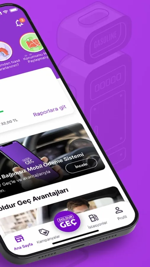 DOLDURGEÇ uygulaması, Gideceğiniz istasyona en kısa yoldan giderek az yakıtla garanti kazanç sağlayacaksınız ve katılımcı markaların istasyonları ile ilgili avantajlardan anında haberiniz olacak..