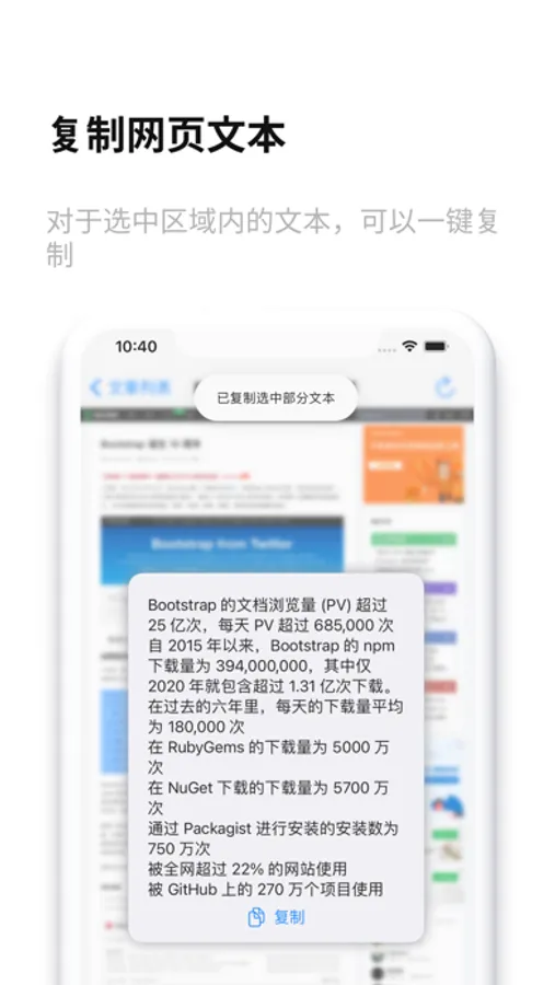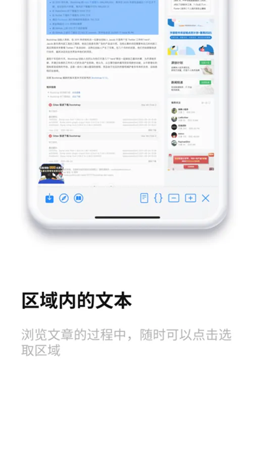 Specifically: In a normal webpage, select the area you pay attention to, if it is text, you can copy it just by one click; if it is a collection of hyperlinked articles, you can view it in an elegant list.
