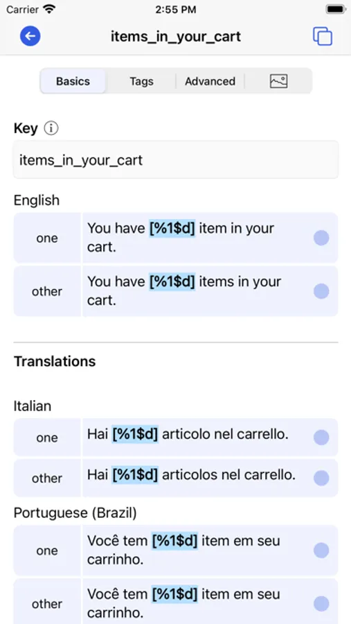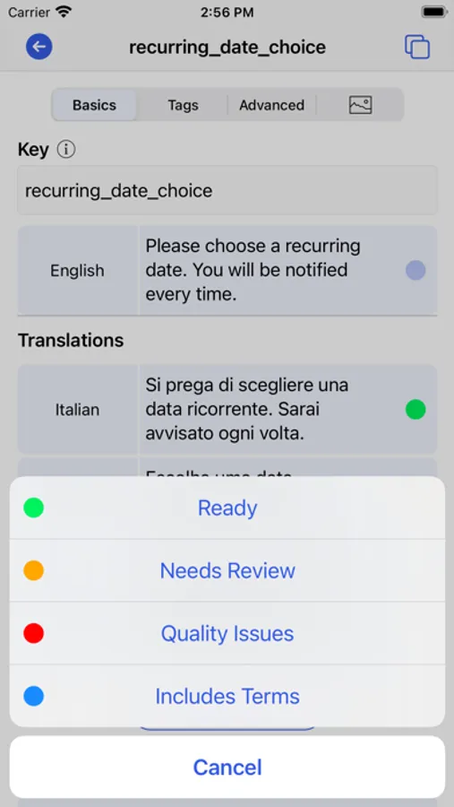 * Save your translator's time with feature availability