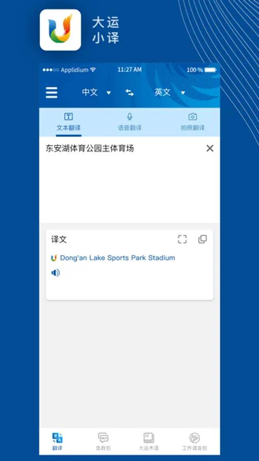 ‘Pocket Translator for U’ app is the official translation app exclusive for the Chengdu 2021 FISU World University Games. In addition to traditional text translation, voice translation, and photo translation, the app also incorporates customised features in its interface: Terminology, Emergency Kit, and Workforce Kit. These features provide emergency translation support for all staff, foreign participants, and client groups. The content includes: