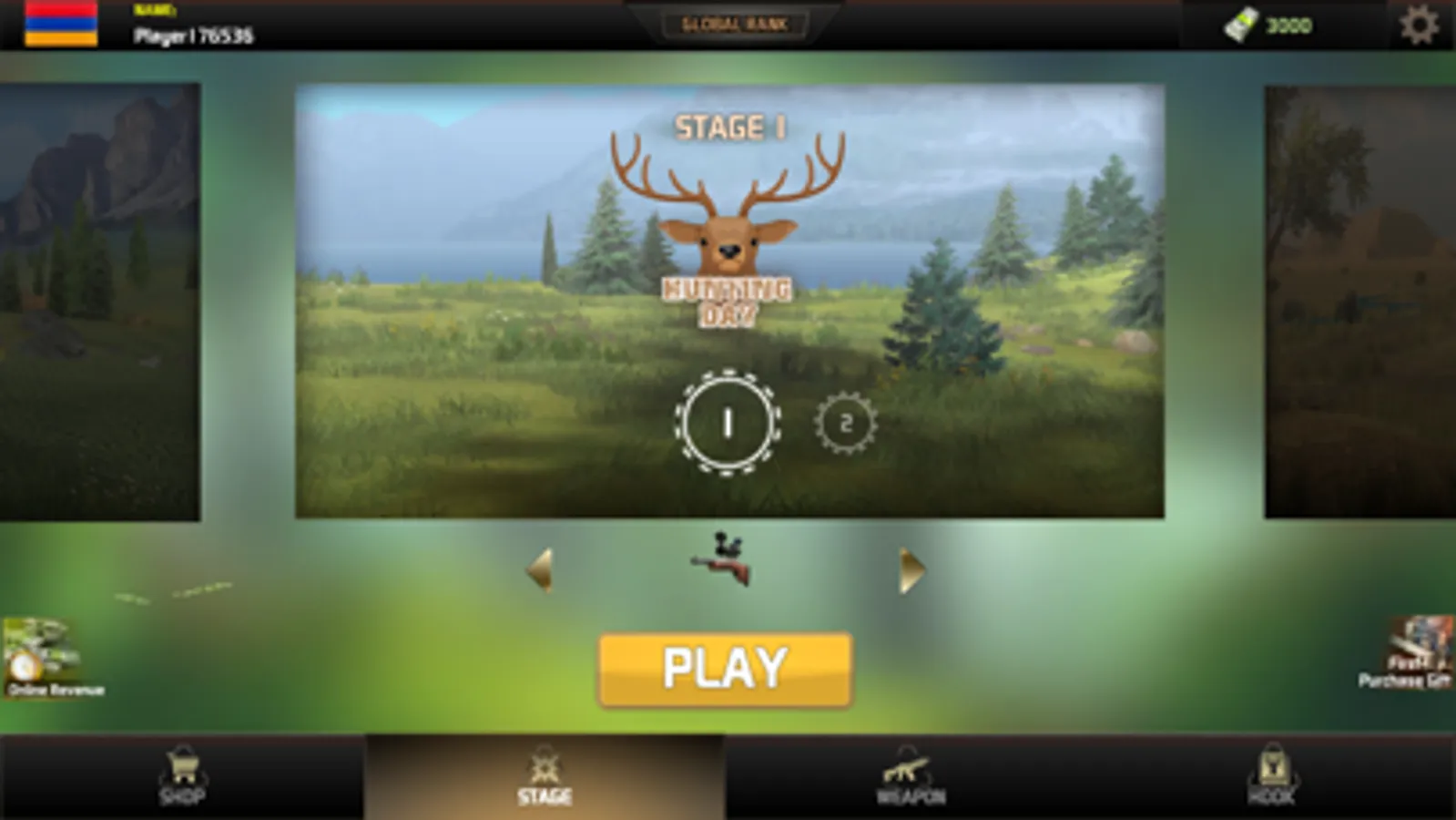 → Use a sniper rifle to shoot deer quietly or compete with other hunters to shoot other wild animals.