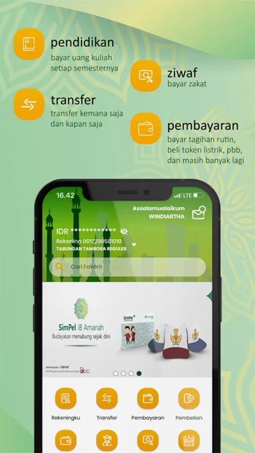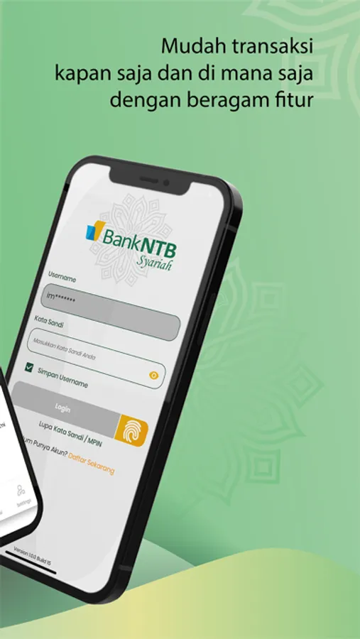 dengan aplikasi mobile banking Bank NTB Syariah Anda dapat melakukan transaksi non finansial (Info Saldo, Mutasi Rekening, Riwayat Transaksi, Manajemen Nomor Pelanggan dan Rekening Transfer) dan Transaksi Finansial (Transfer, Pembayaran dan Pembelian)