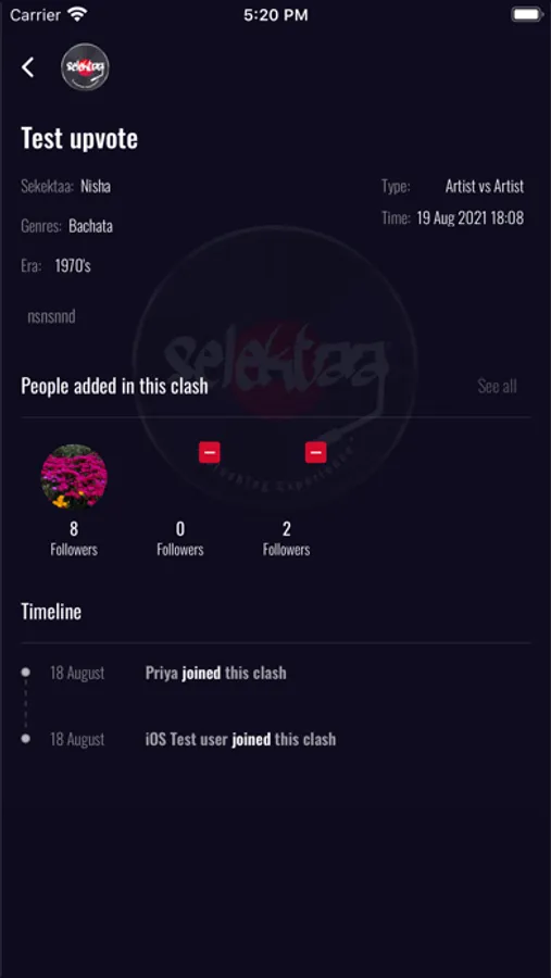 Selektaa is a social media game for those that like musical swordplay. Build your crate load it with music and challenge your opponents to clash! Invite friends to watch this live video streaming event, and let's see whose crate has the most fire. At the end of the clash the audience will decide who should be king or queen. Don't back down, just get the Crown!