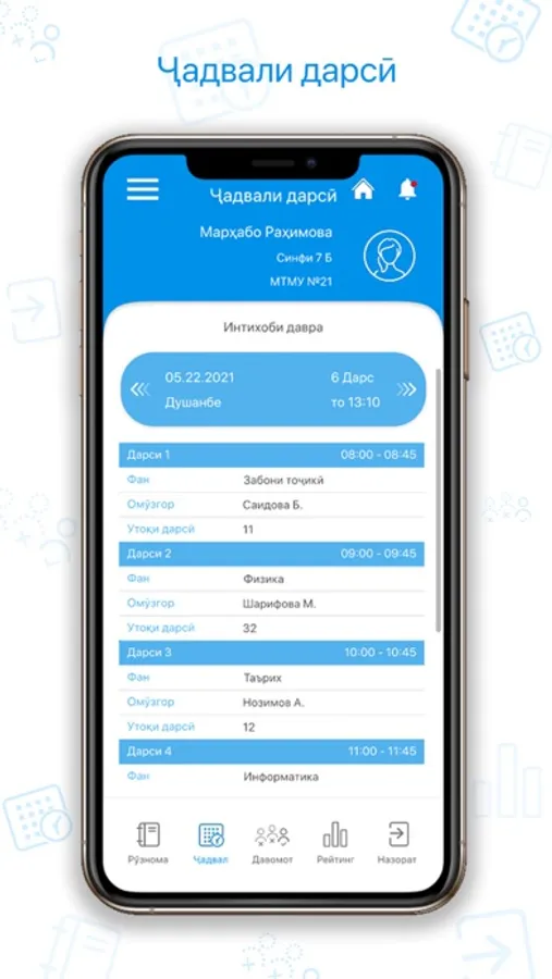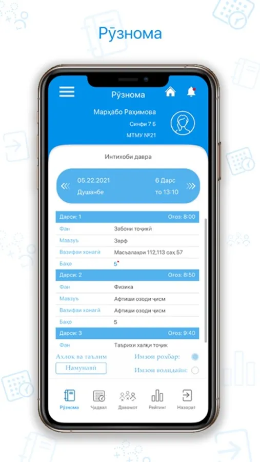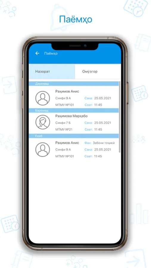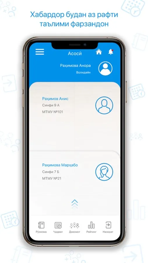 Ин барнома ҳамчунин шомили унсурҳои мухталифи иттилоотӣ, аз ҷумла журнал ва рӯзномаи электронӣ, ҷадвали дарсҳои асосӣ ва иловагӣ, назорати давомоти хонандагон ва мониторинги сатҳи дониши онҳо, мебошад. Тавассути ин барнома волидон метавонанд аз вазифаҳои хонаги фарзандонашон аз фанҳои таълимӣ, супоришҳои омӯзгорон ва дигар маълумоти зарурӣ, ки аз маъмурияти муассисаи таълимӣ мерасад, бо паёмак ба телефон дастрас намояд.