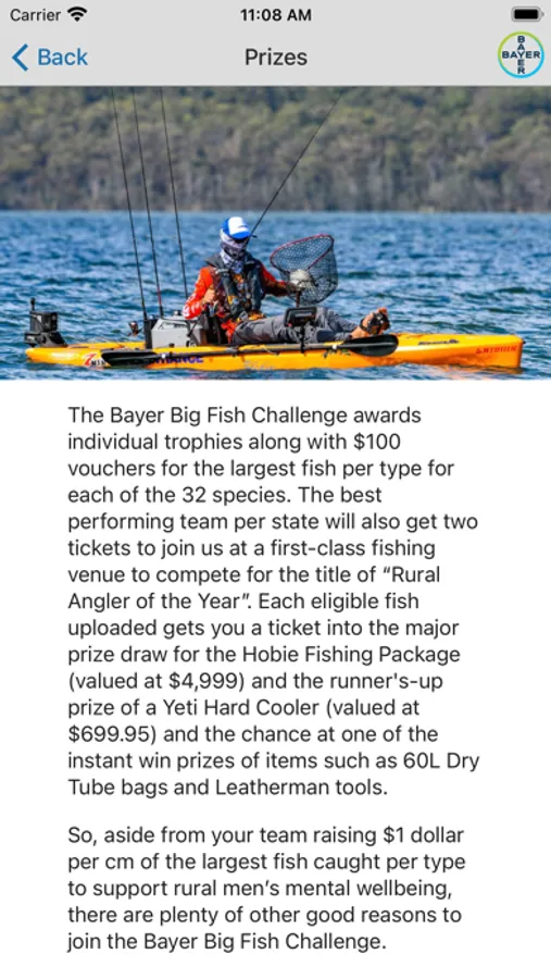 Love fishing? Do you live and work in rural Australia? If so, download this app and join The Bayer Big Fish Challenge. Win prizes and support rural wellness.
